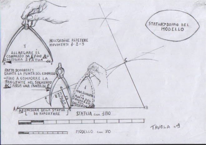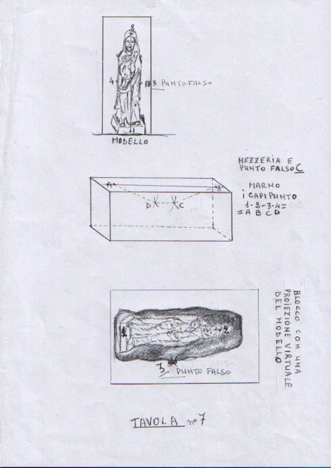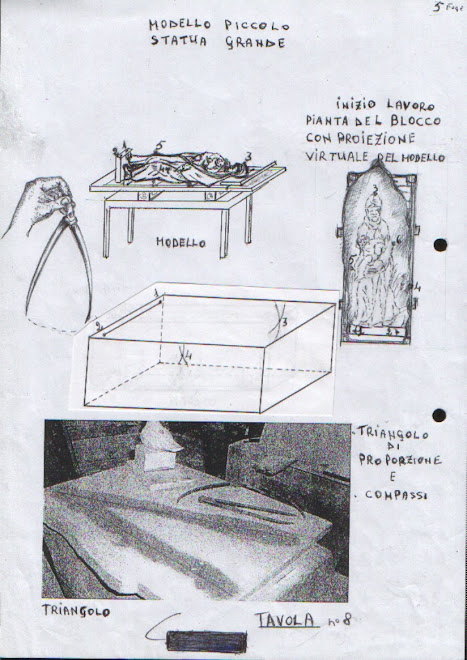 Sulle tante opere dedotte dai testi d'arte, desideriamo fare alcune riflessioni sul linguaggio visuale. Anzitutto premettiamo una scheda didattica: “la figura umana ha una sua architettura espressa da forme standardizzate, organizzate da elementi geometrici e secondo le leggi della proporzione, in varie epoche stabilite. Sono figure geometriche derivanti dalle forme base, riconoscibili nel triangolo equilatero, il quadrato e il cerchio. Contestualmente, gli altri segni fondamentali del linguaggio e relazionati tra loro mediante la grammatica visuale, sono: il punto, la linea, la superficie, il volume, lo spazio, la luce, il colore. Alcuni di questi, dianzi detti, possono sembrare accostamenti impropri con la scultura e molto più affini alla pittura e al disegno, ma non è così. Oggi il linguaggio è un sistema di segni condivisi, non più riferito esclusivamente a quello verbale, ma comprende tutto un sistema di segni. E nonostante l'enorme portata comunicativa delle immagini è necessario acquisire tutti gli strumenti per interpretarle e leggerle se, gradualmente, si desidera scoprire la loro immensa potenzialità creativa. E' pur vero che ognuno di noi vede ciò che sa' e vi attribuisce un valore singolare, ma ci si può educare e imparare a saper leggere e interpretare. Nel contesto delle arti visuali si sappia almeno riconoscere le differenze elementari: ad esempio, per una scultura destinata agli spazi del territorio, si pensa che nella composizione si debba tener conto dei fattori esterni, quali la morfologia del territorio, il tessuto urbanistico, la preesistenza di vincoli naturali, rispetto ad altre inserite in contesti diversi. Dunque, se i segni utilizzati dal linguaggio si differenziano, in vari sistemi, allora è meglio chiarire subito che un segno è tale quando rimanda a qualcos'altro. Tali segni hanno una validità compositiva plurima, concorrono e si relazionano tra loro donandoci una sensazione di armonia; non a caso le opere figurative stimolano in noi una emozione estetica. Proviamo, nella scultura, a tracciare alcune parti con la gradina e/o la subbia, contrapposte ad altre levigate o lucide, il contrasto è evidente e non è molto dissimile dal tratteggio di un buon disegno. Oppure ricavare delle ombreggiature scavando nel marmo e accostandolo al chiaro dei rilievi. Così come si possono ottenere superfici texturizzate composte da segni organizzati, uguali o simili accostati, intrecciati in maniera casuale o disposti ritmicamente in modo da formare reticoli omogenei. Infine renderle morbide e sinuose, predisponendo linee sfuggenti, nel panneggio come in alcune o tutte le parti anatomiche. Il senso di questo nostro ultimo approfondimento è supportato dall'opera del ticinese Stefano Maderno, Santa Cecilia Roma, 1600. “Il marmo sembra privato della sua consistenza di materia, percorso in superficie da marcati andamenti lineari, continui e fluenti ( la Santa è coricata su un fianco, le braccia allungate lungo il corpo in linea con le gambe, seguono il panneggio ed il copricapo nel copioso defluire verso l'imbuto dei piedi, NDR ). I rilevi tracciati lungo i panneggi delle stoffe conferiscono all'insieme un senso di controllato dinamismo e sembrano segnare le linee di forza della figura.” Interagendo, arbitrariamente e fantasiosamente, solo da un punto di vista tecnico, sull'espressività della statua di Maderno, potremo interrompere detto fluire inserendo un tratto di plasticità, a contrasto, esclusivamente per dimostrare le molteplici possibilità segniche disponibili. Guai a farlo!, è brutto anche come paradosso.